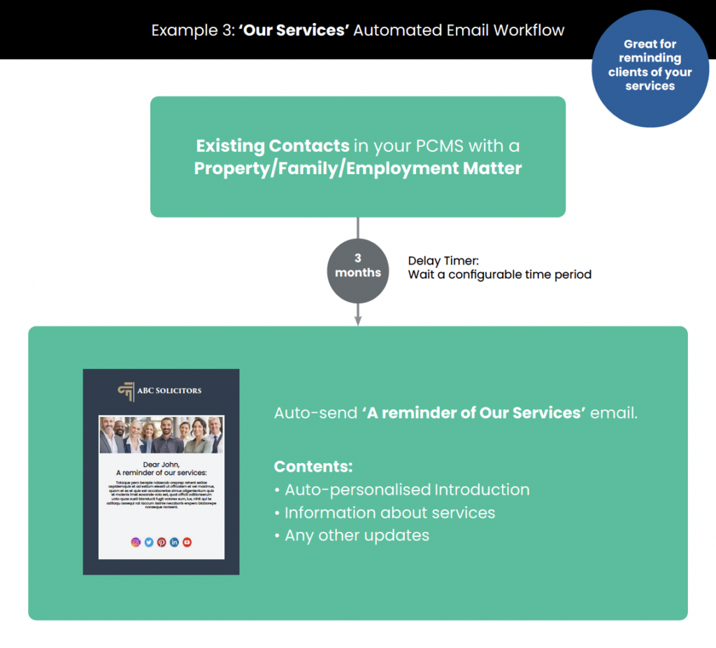 Allows you to leverage the power of automated email sequences triggered by specific events or criteria, such as welcoming new clients or following up after a service.